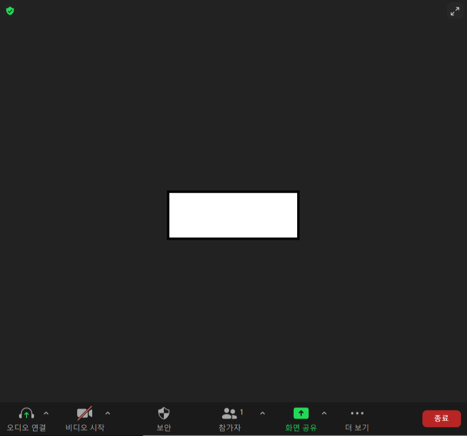 위 화면에서 '비디오 시작'을 눌러 캠, 카메라의 인식 여부와 각도등을 체크 할 수 있고, '오디오 연결'이나 마이크 음소거를 눌러 오디오와 마이크 연결을 간편하게 on/off 할 수 있습니다. 마지막으로 화면 좌측 상단의 방패모양 버튼을 눌러 현재 개설한 줌 회의의 회의 ID와 비밀번호, 참가 링크를 확인 할 수 있습니다. 다만 무료 계정인 경우 줌 회의 번호와 비밀번호, 참가 링크가 회의를 개설할때마다 변동됩니다.